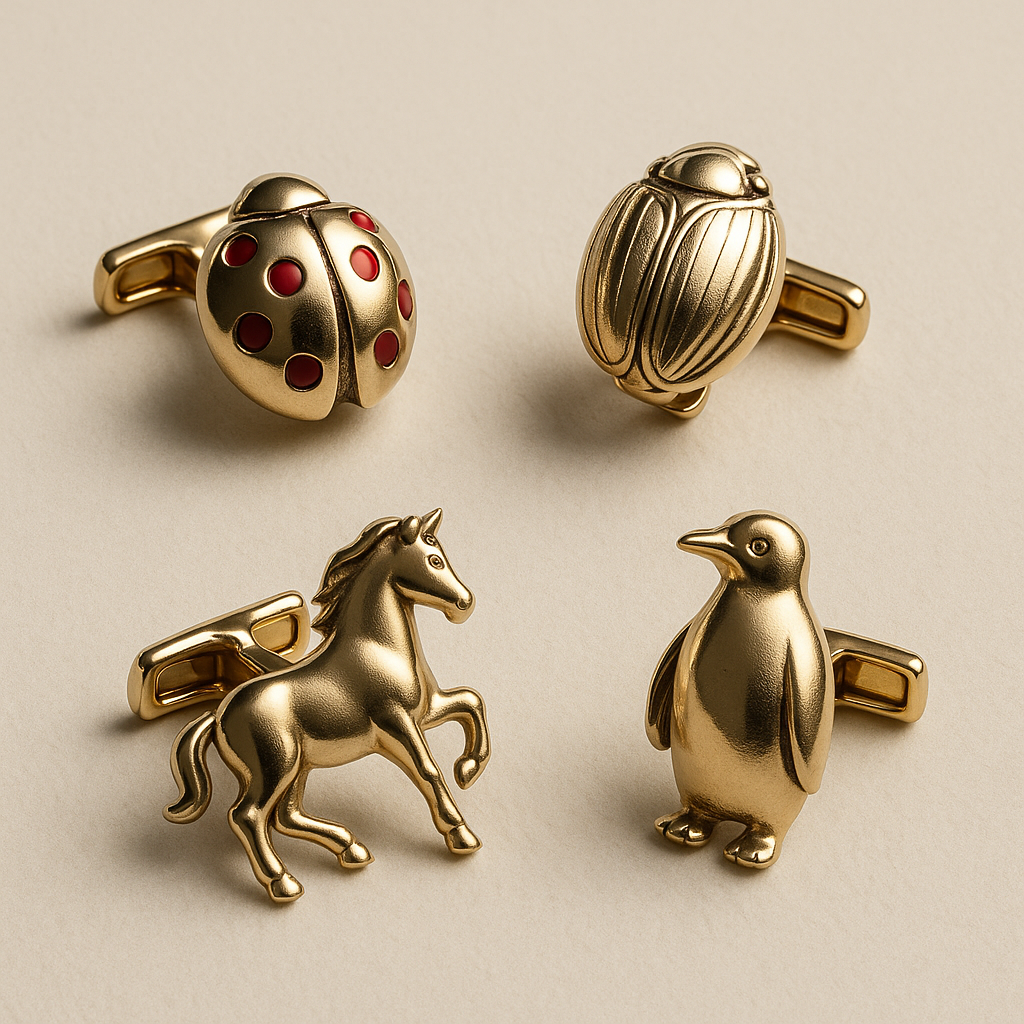 Impressions is a study in expression, power, and craft. From the sweep of a pen to the strike of a claw, each cufflink captures a mark of identity—made for those who leave something behind without saying a word.