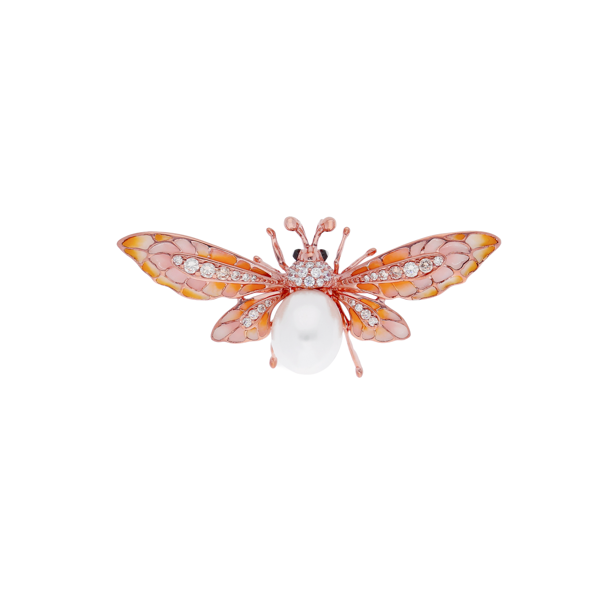 Bella – A Glimmer of Grace Exquisitely crafted from fine silver, Bella is a delicate bee brooch adorned with shimmering crystals, soft pink enamel and a luminous faux pearl. With intricate detailing and warm, rosy hues, its delicate wings reflect the gentle glow of nature—a timeless symbol of elegance, joy, and transformation.