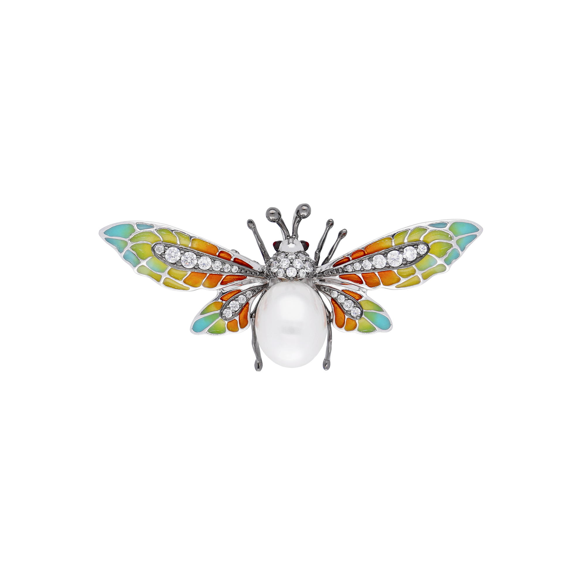 A Tiny Treasure with a Colourful TwistExquisitely crafted from fine silver, Ziggy is a charming bee brooch adorned with shimmering crystals, multicoloured enamel, and a luminous faux pearl. With intricate detailing and vibrant hues, its delicate wings capture the playful energy of nature—a timeless symbol of joy, resilience, and brilliance