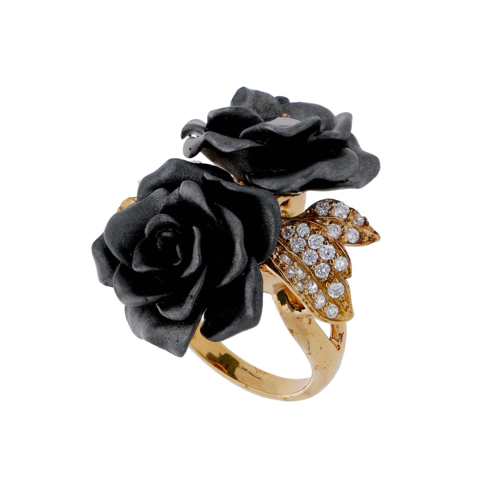 The Noire Épine ring combines silver and aluminum in a sleek design inspired by sharp thorns, blending boldness with elegance.