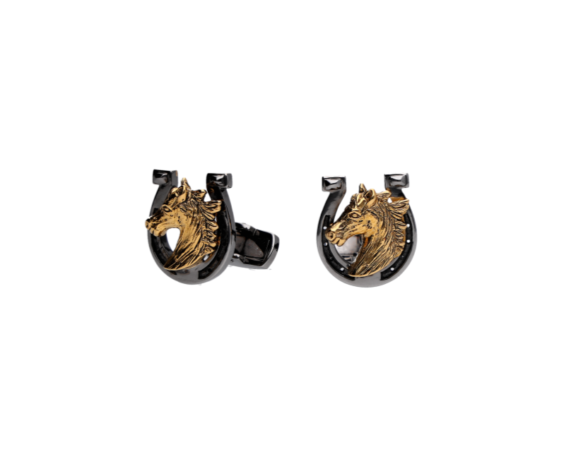 Curved in timeless form, this cufflink showcases a polished horseshoe, a classic emblem of luck, strength, and enduring style.