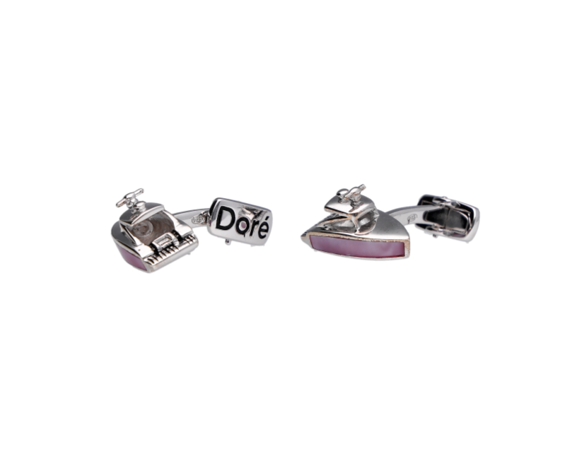 A sleek nod to nautical thrill, this cufflink captures the dynamic form of a speed boat in polished detail, an emblem of elegance, power, and adventure on the open water.