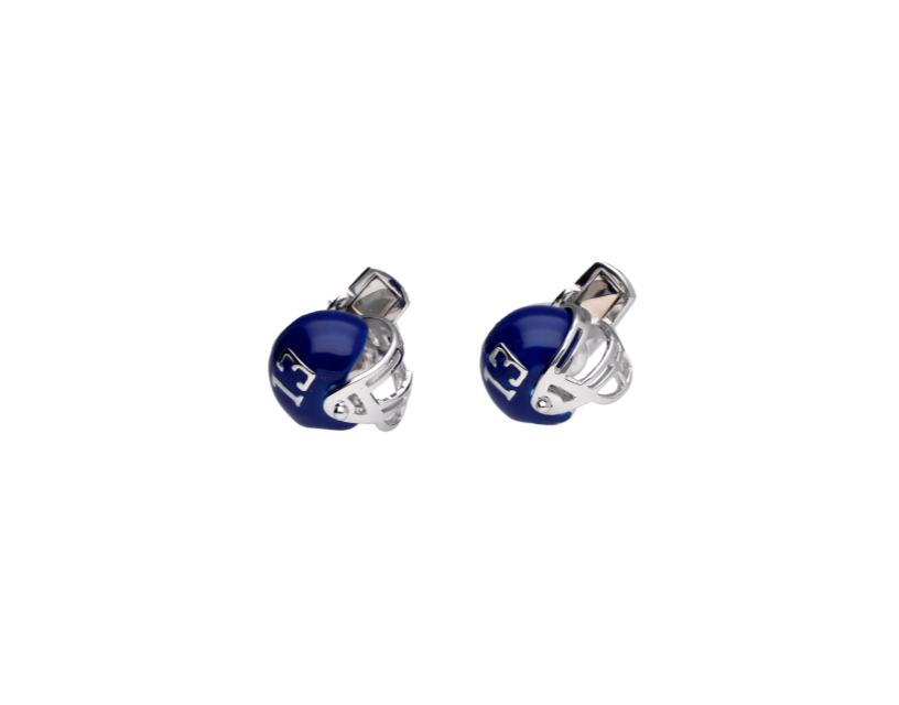 Shaped in the bold form of a baseball helmet, this cufflink is a tribute to the game’s enduring spirit, blending sporty charm with refined, polished detail.