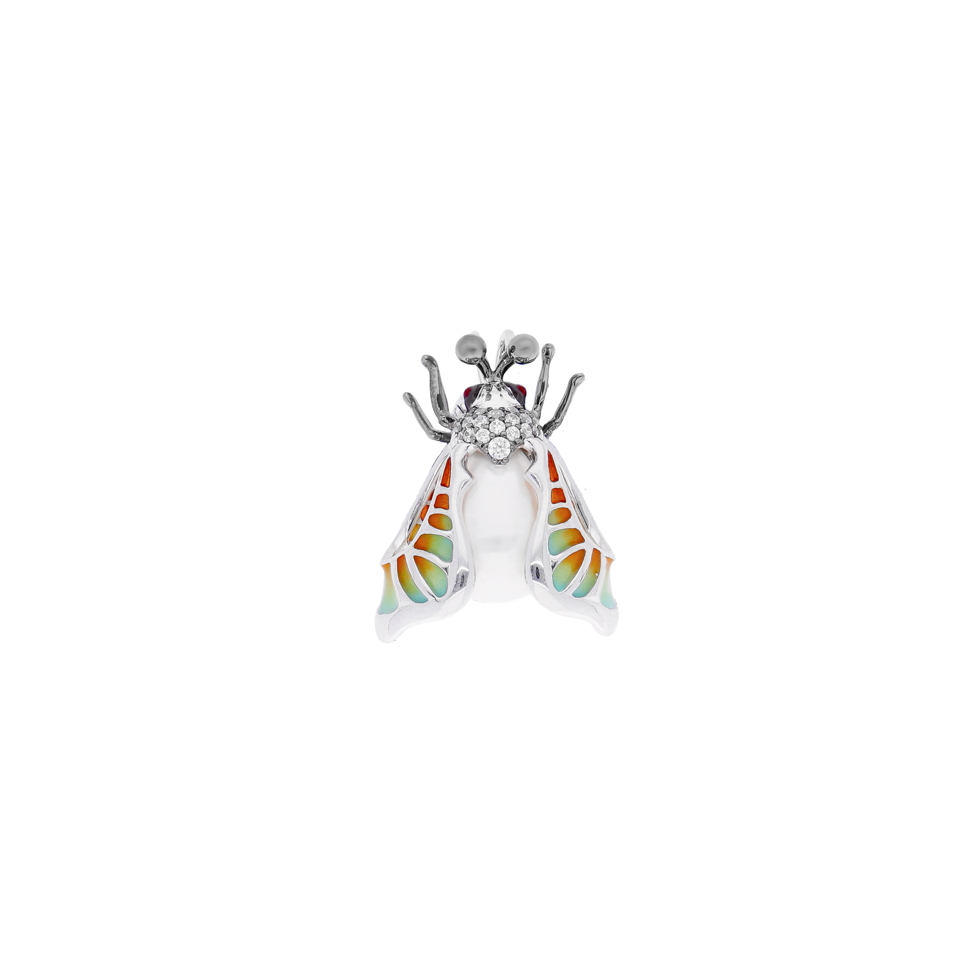 The Bold Buzz of Brilliance Exquisitely crafted from fine silver, Zeke is a striking bee brooch adorned with shimmering crystals, multicoloured enamel, and a luminous faux pearl. With meticulous detailing and bold, vibrant hues, his strong wings embody the fearless energy of nature—a timeless symbol of adventure, resilience, and charm.